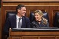 El presidente del Gobierno, Pedro Sánchez y la vicepresidenta segunda y ministra de Trabajo, Yolanda Díaz, durante una sesión de control, Congreso de los Diputados, a 12 de febrero de 2025, en Madrid (España). – Eduardo Parra – Europa Press